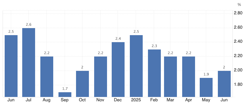 (欧元区通胀已经降至2%目标,但前景相当模糊,来源:tradingeconomics)