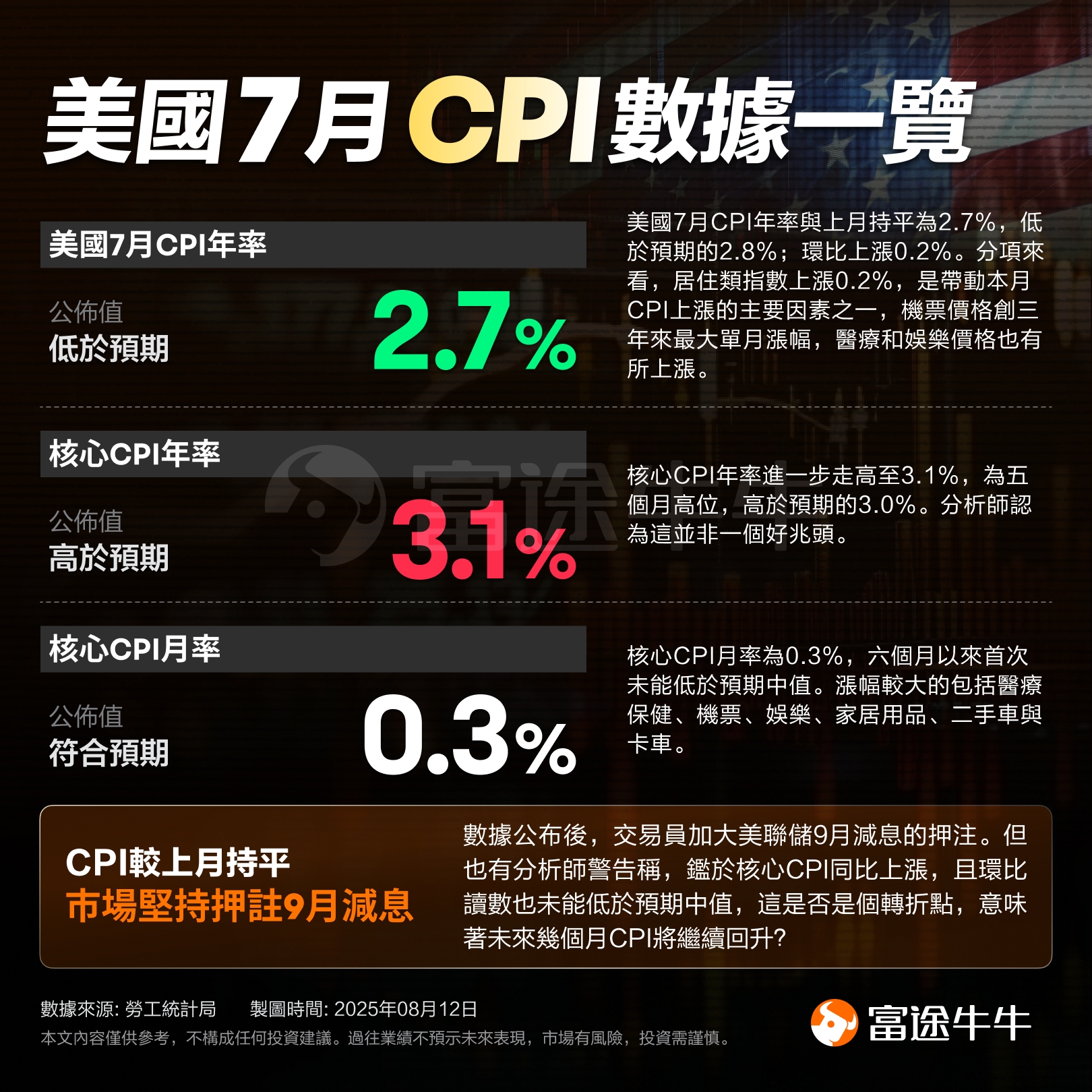 美国最新CPI数据出炉,核心通胀年率意外飙升至五个月高位,分析师直言“这不是一个好兆头”,市场加大9月降息押注……