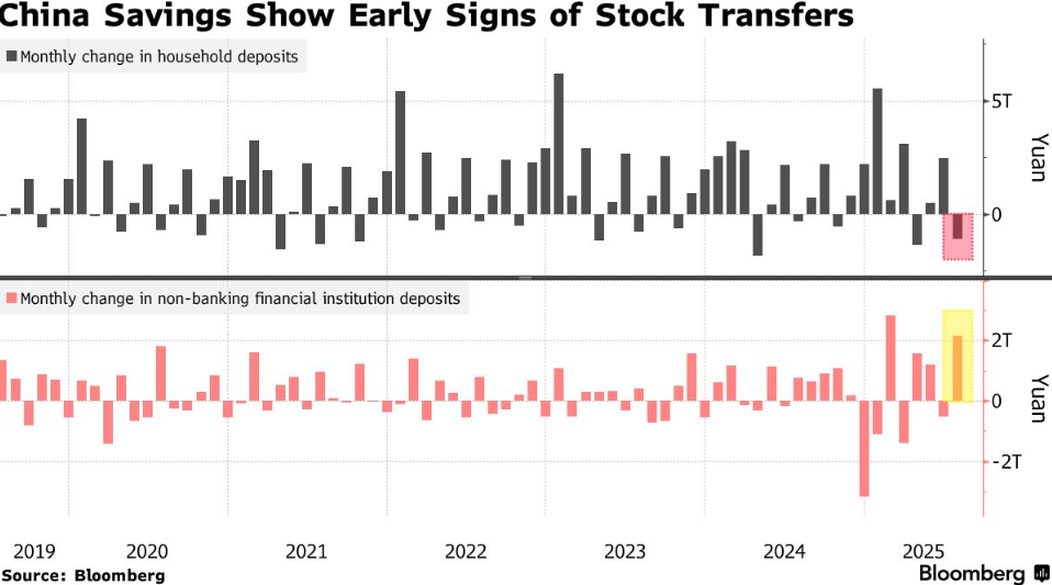 浙商证券估计约有4.25万亿元超额储蓄可能流入股市,而中信建投证券的预测更高,达60万亿元。随着股票风险溢价徘徊在创纪录高位附近,这些资金可能会被释放出来。