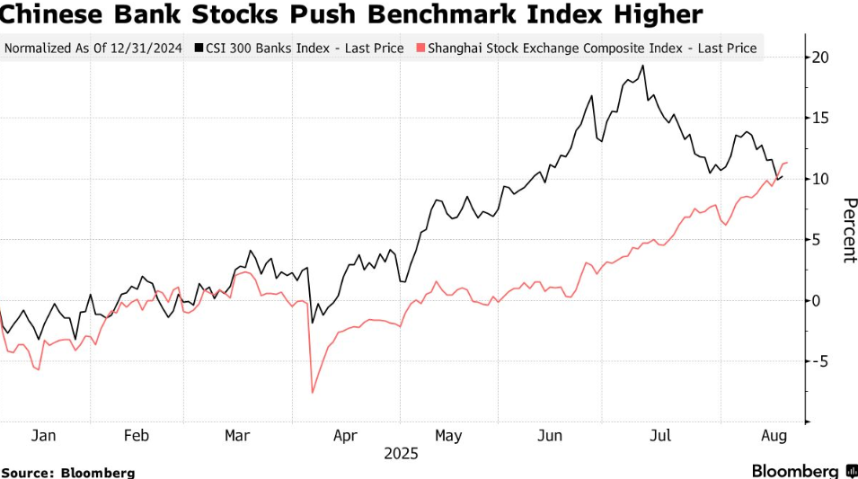 这一判断为日益升温的中国银行股乐观情绪再添佐证。银行股正被越来越多投资者视为追求收益的安全港湾。受保险资金等机构投资者在债券收益率下行背景下寻求更高回报的推动,追踪香港上市中资银行股的关键指数今年已上涨约25%。上证综指攀升至十年高位,银行板块作为该基准指数的重要权重板块功不可没。