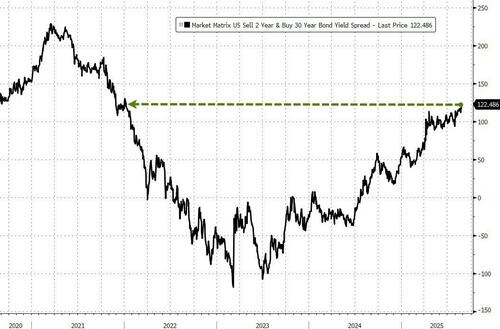 周二,备受关注的2年期和10年期美国国债收益率曲线盘中升至了自4月以来的最高水平,而30年期国债收益率与两年期国债收益率之间的溢价更是飙升至了2022年初以来的最高水平。