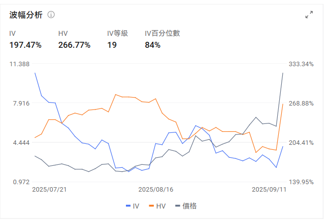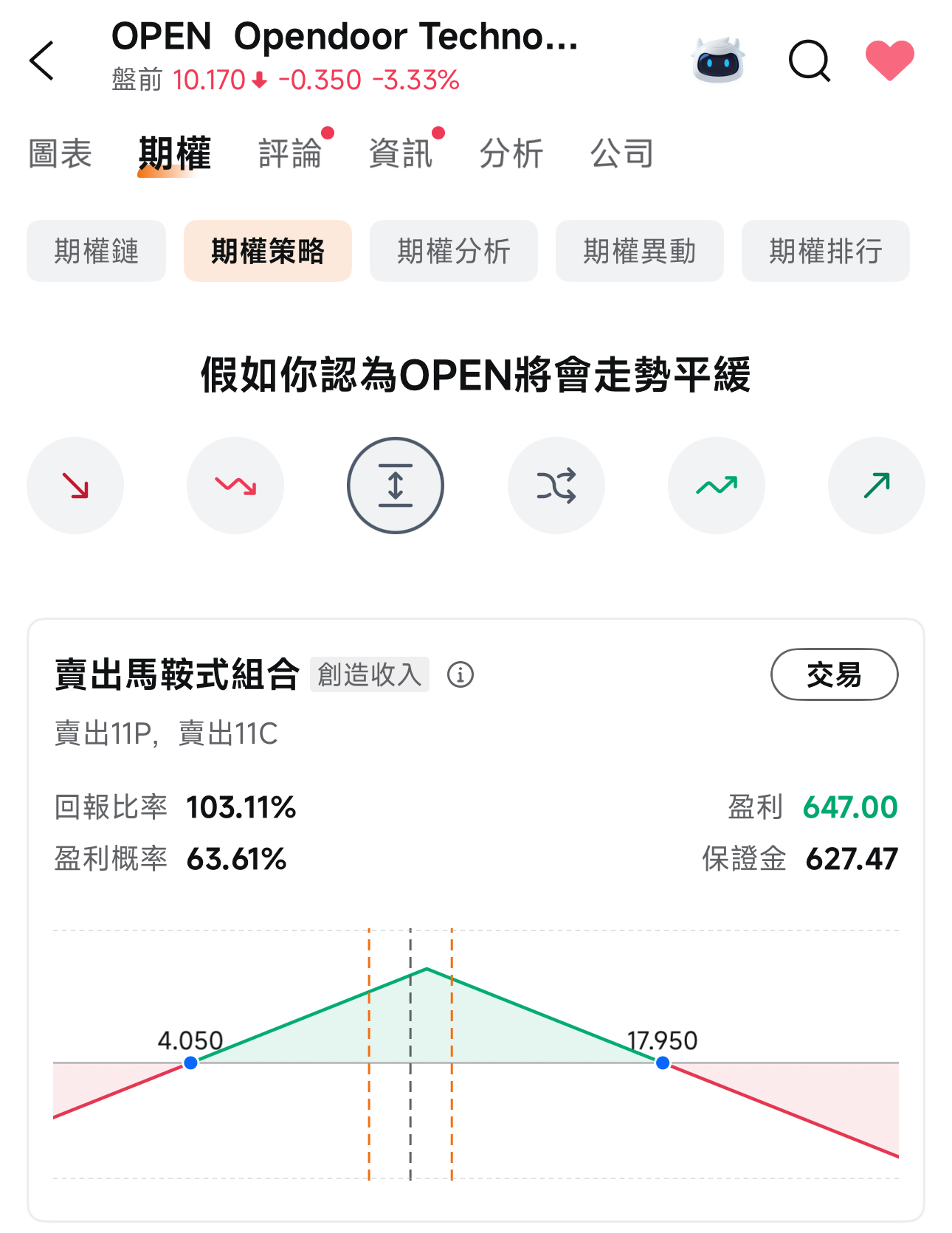 从交易角度看,存在一个潜在机会:小幅做空OPEN的看涨期权和看跌期权。这一操作本质上是押注 “OPEN的IV隐含波动率将随时间下降”。