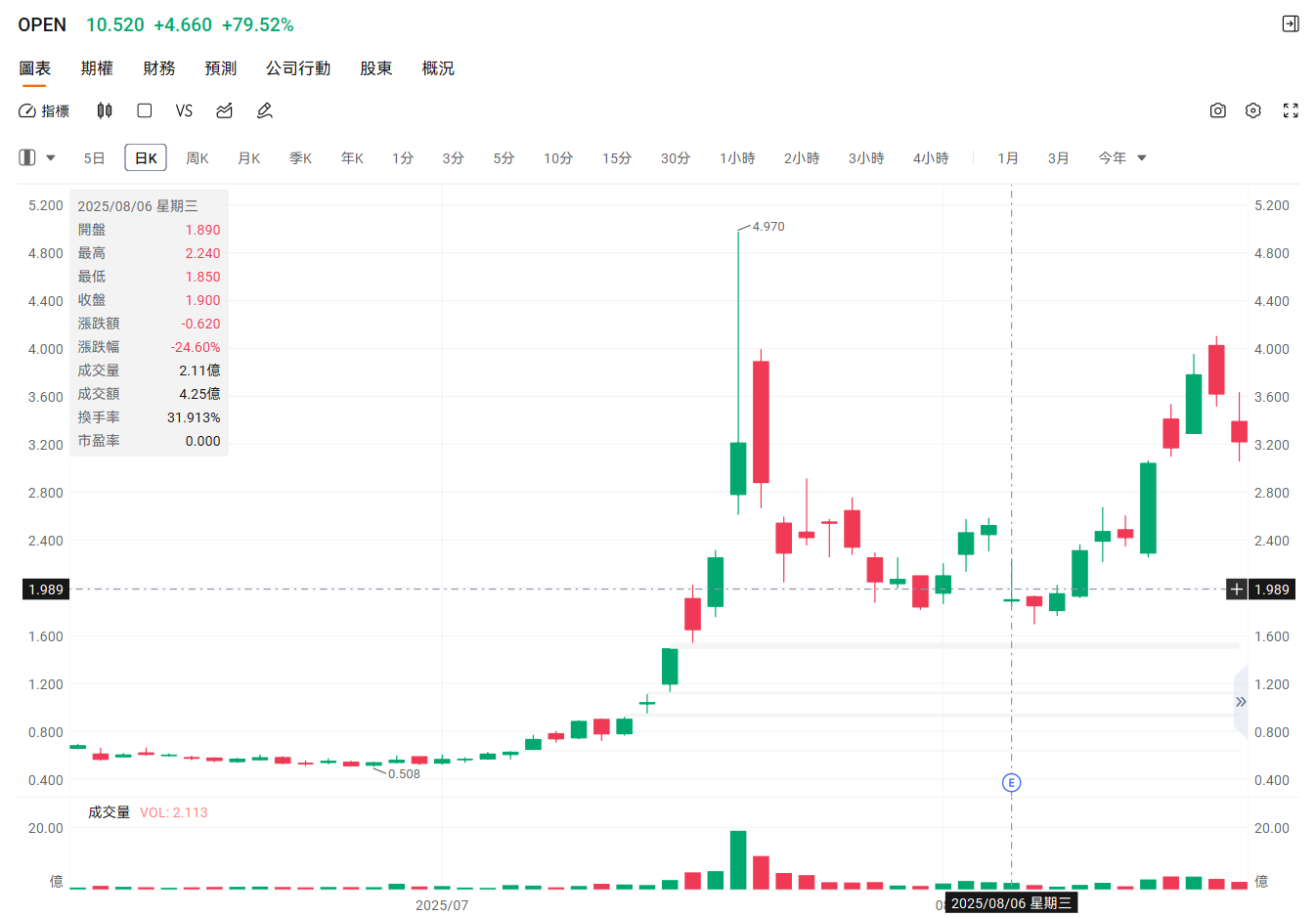 随着 “MEME股热度” 逐渐消退,OPEN 股价的日波动率大概率会降低,届时看涨期权和看跌期权的价值都会随之下跌。需要留意的是,这属于投机交易,需投资者自行评估风险。