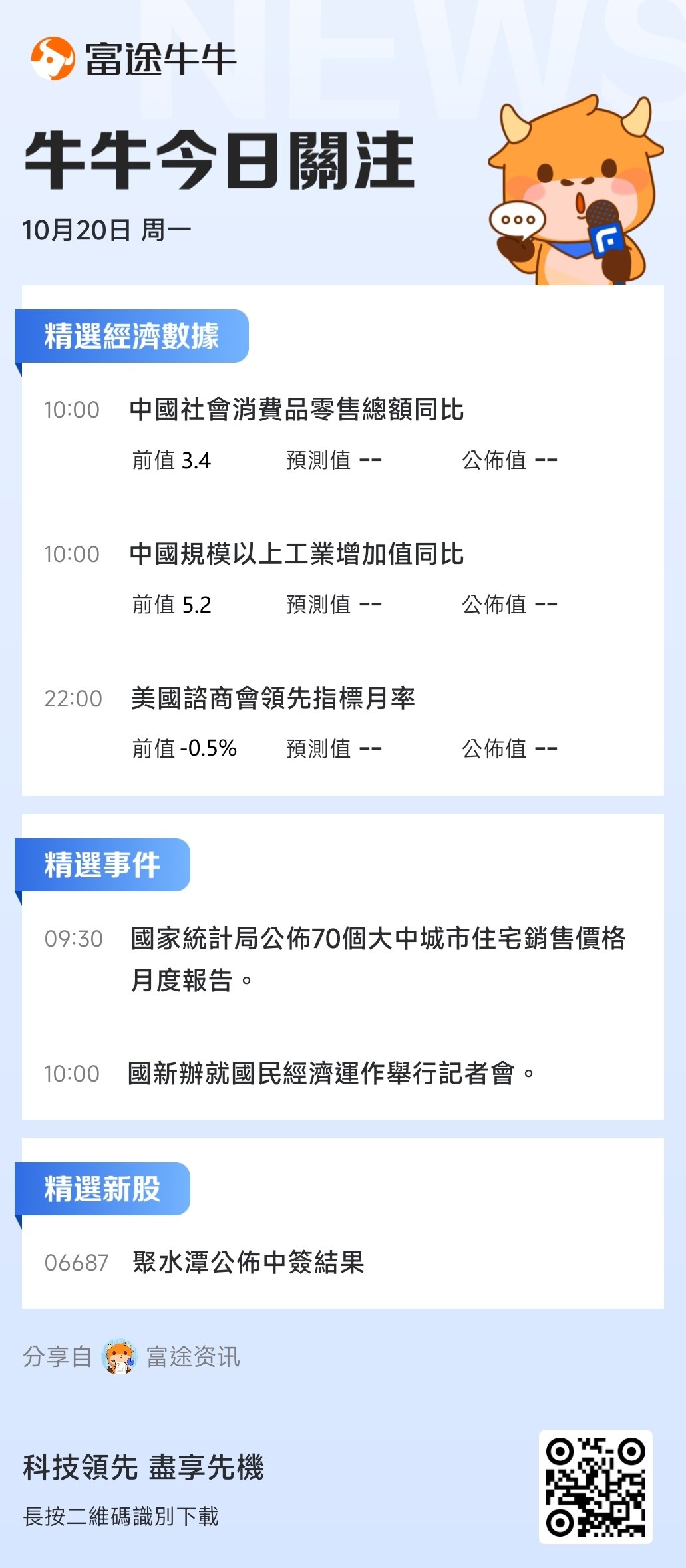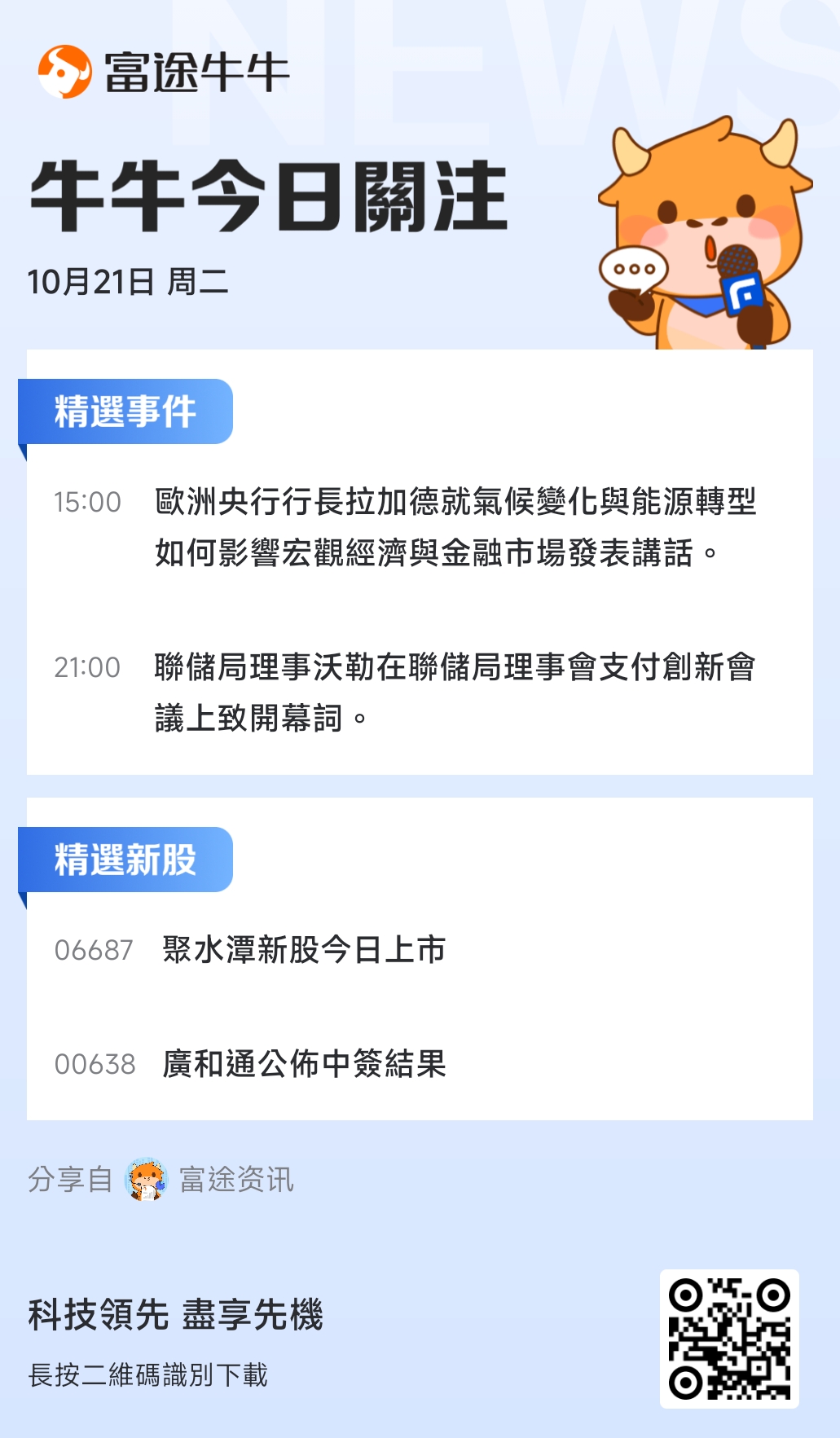 新股方面, $聚水潭 (06687.HK)$ 将公布中签结果。