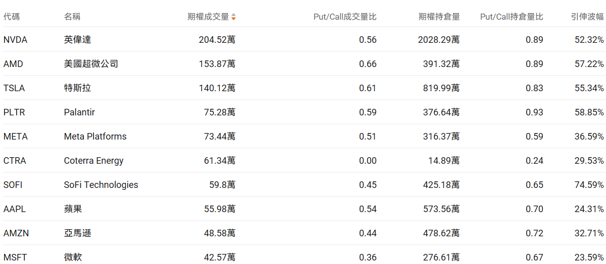 美股期权成交量排行榜前十