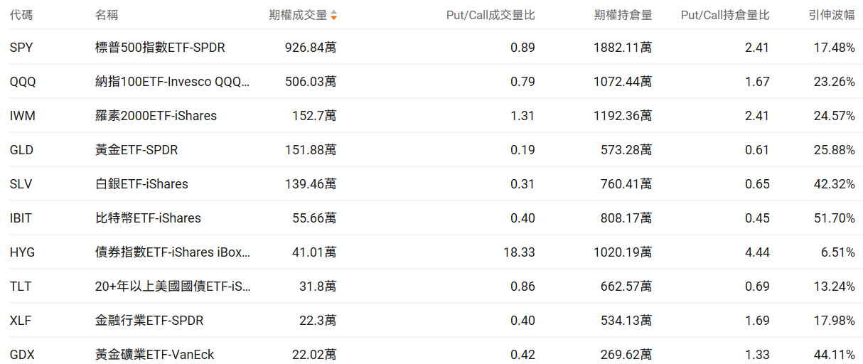 三、美股ETF期权成交榜