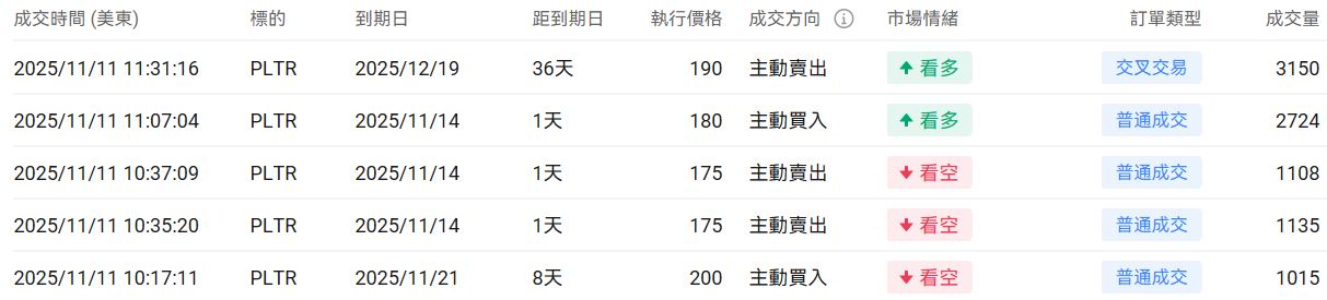 2、 $Palantir (PLTR.US)$ 上一交易日跌3.56%,前一日认沽/认购比例下行,成交量小幅度上行。