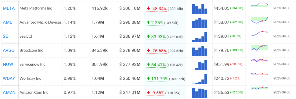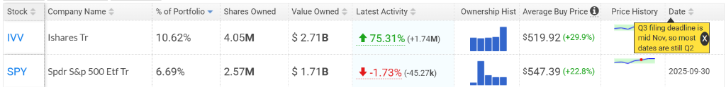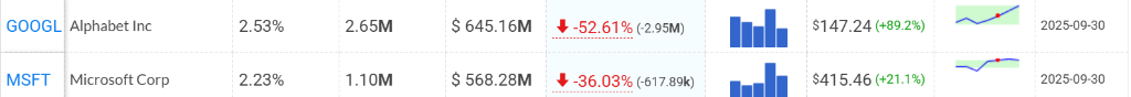 $标普500ETF-SPDR (SPY.US)$ 持仓暴增75.3%,至405万股,占比升至10.62%,为第一大持仓。