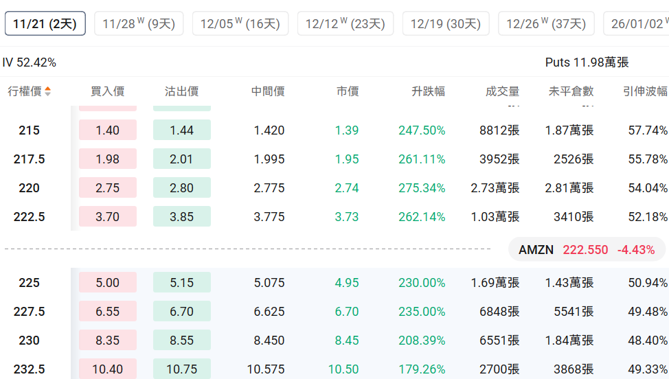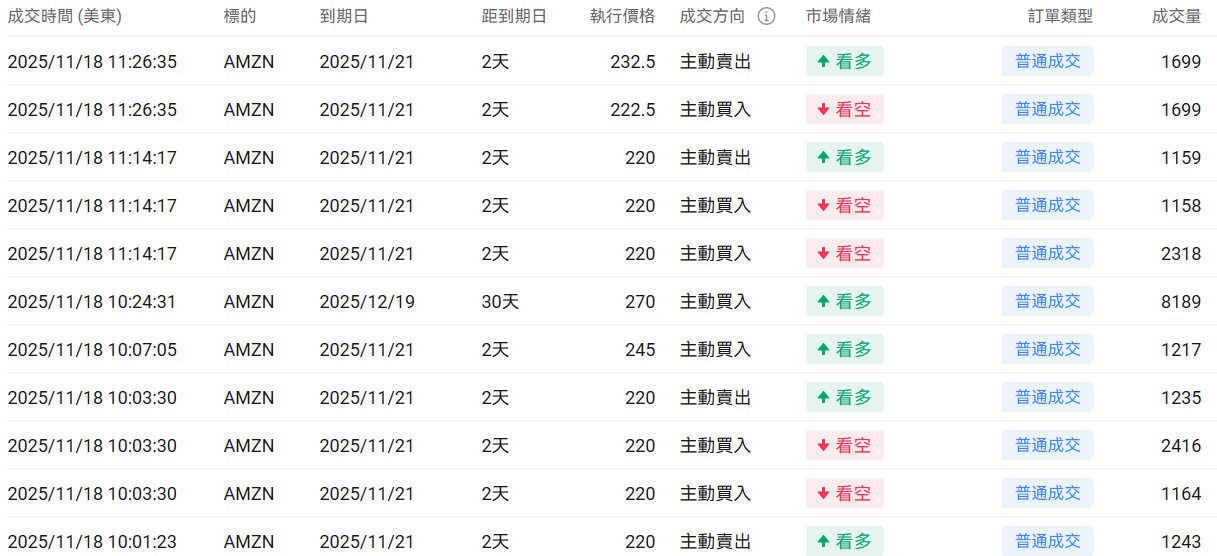 1、 $亚马逊 (AMZN.US)$ 上一交易日跌4.43%,前一日认沽/认购比例小幅度下行,成交量小幅度上行。