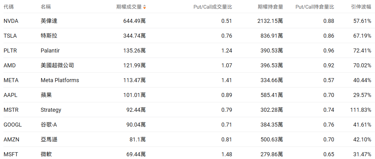 美股期权成交量排行榜前十