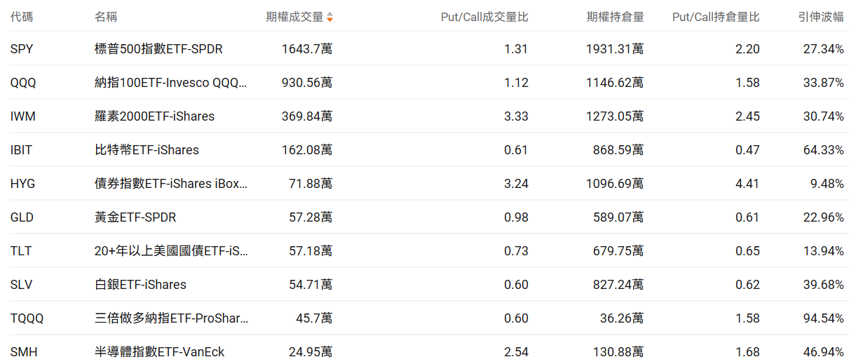 三、美股ETF期权成交榜