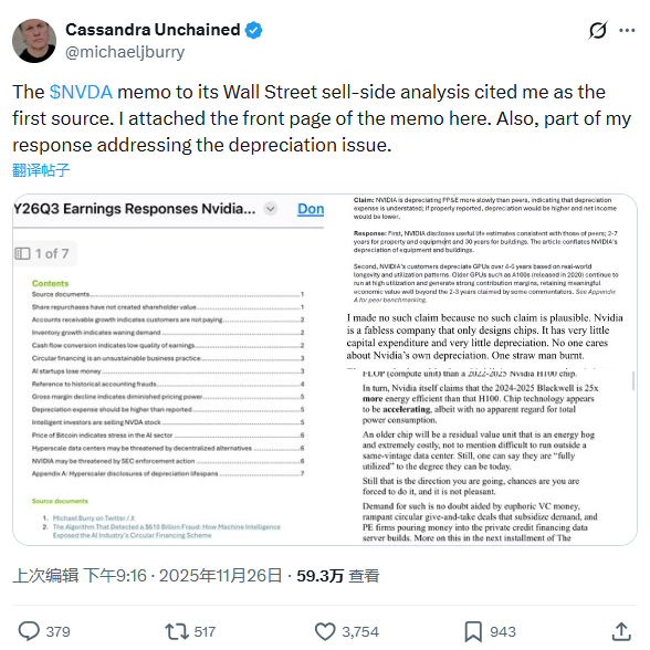 11月26日周二,Burry在其新开设的Substack博客平台发文写道,自己“不敢相信”这些回应出自全球市值最高的上市公司之手,并称该文件“读起来几乎像个骗局”。