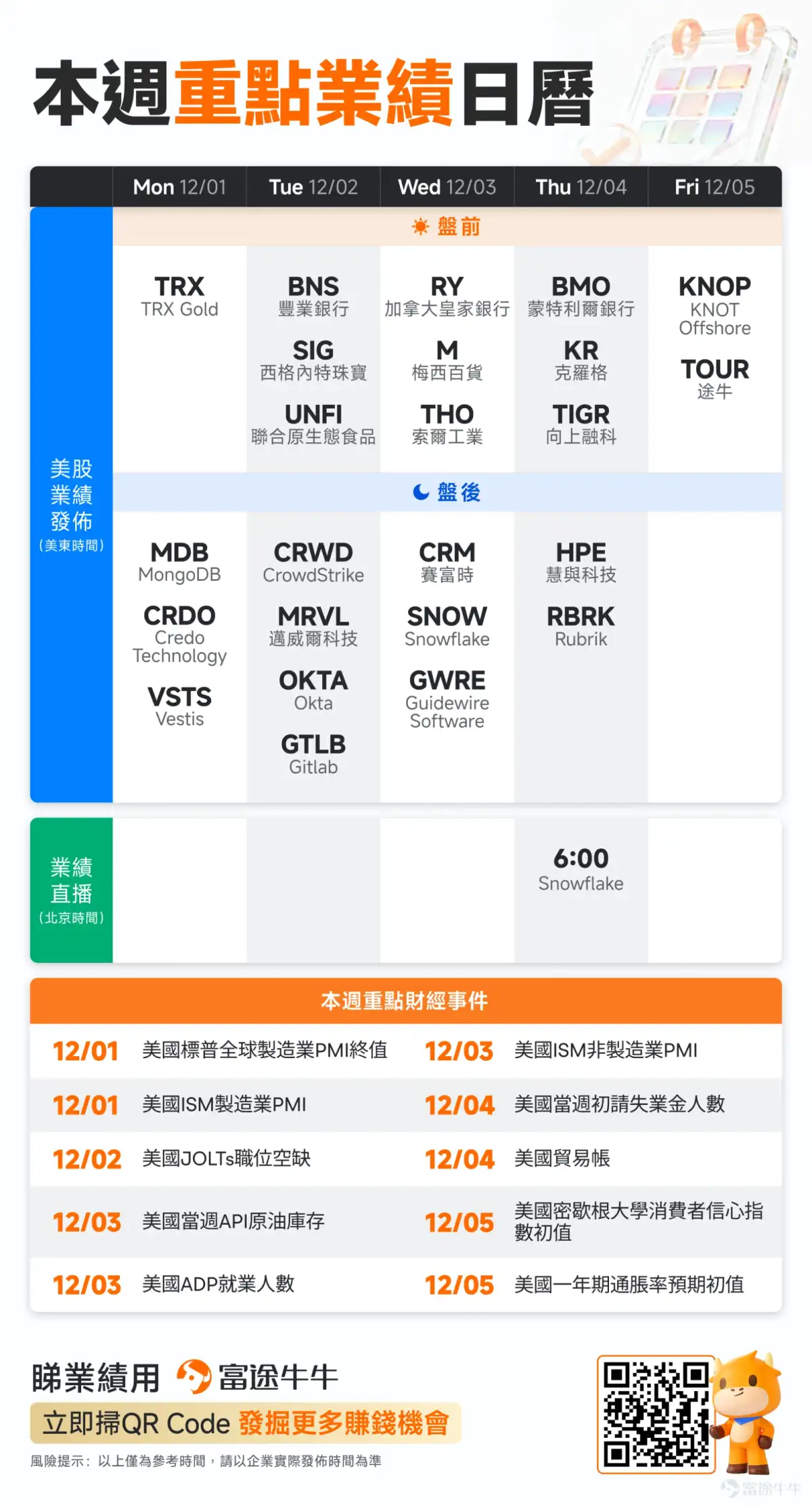 财经大事抢先看,投资机会早发现!打开富途牛牛>市场>美股>财经日历/精选宏观数据,抢占投资先机!