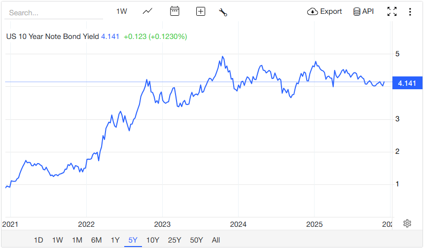 然而,作为美国消费者和企业借贷成本主要基准的关键美债收益率却根本没有下降。自美联储开始放松货币政策以来,10年期美债收益率已上升近半个百分点至4.1%,30年期美债收益率更是上涨超过0.8个百分点。