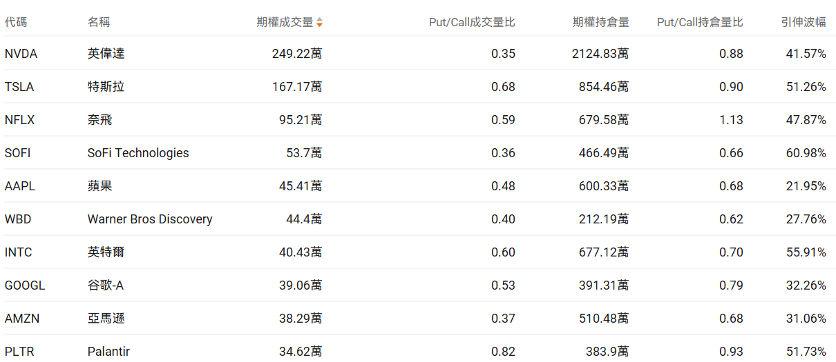 二、美股期权成交榜