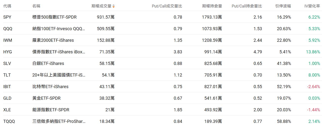 三、美股ETF期权成交榜