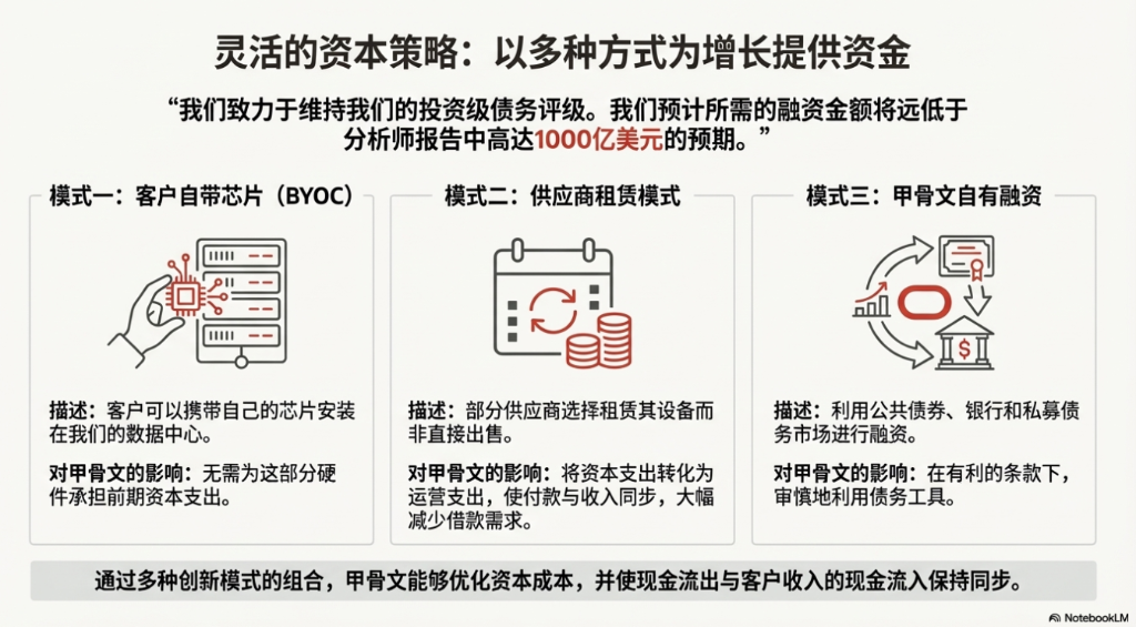 对此,甲骨文云计算业务CEO Clay Magouyrk在回答德意志银行分析师关于融资需求的尖锐提问时,直接反驳了这一预测。他揭露了甲骨文目前采用的非典型融资模式: