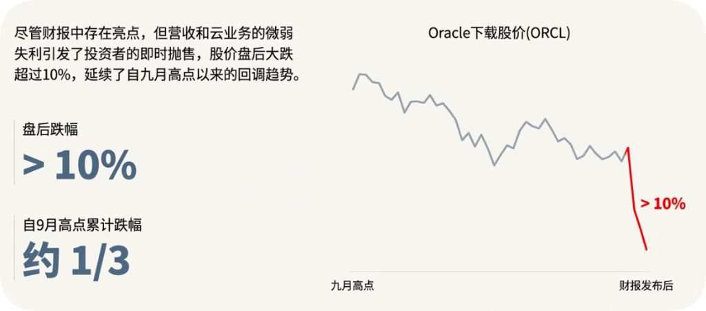 甲骨文财报引发华尔街热议:尽管非GAAP EPS大幅超预期、5230亿美元订单积压创新高,但真实利润被27亿美元一次性收益“拔高”,核心盈利与现金流承压。订单增长难掩转化焦虑,云业务增速不及预期,资本开支暴涨导致自由现金流转负。财报后股价急跌10%,瑞银、美银下调目标价,大摩将评级置于审查,市场关注点已转向盈利质量与订单兑现度。