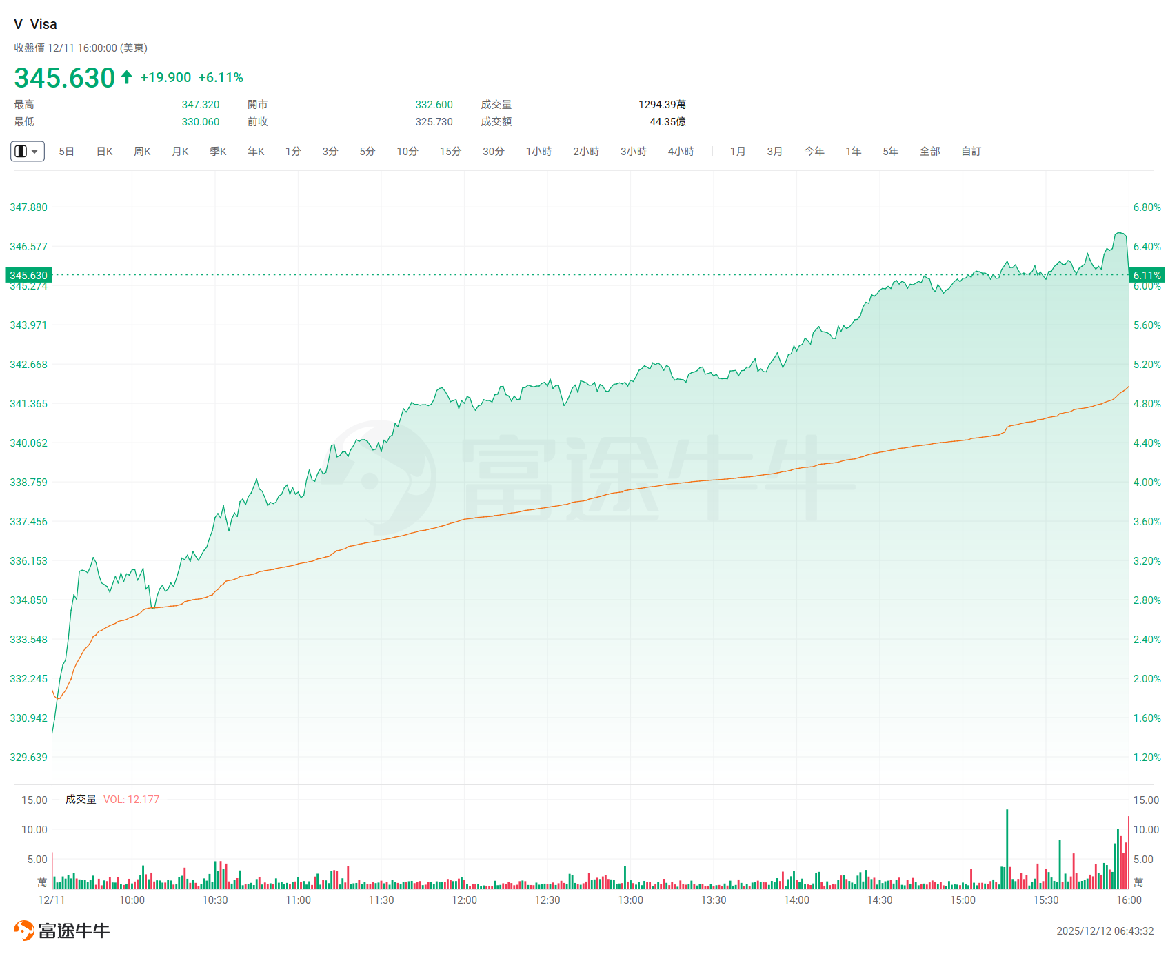 $Visa(V.US)$ 收涨超6%,美银全球研究将Visa股票评级从中性上调至买入。