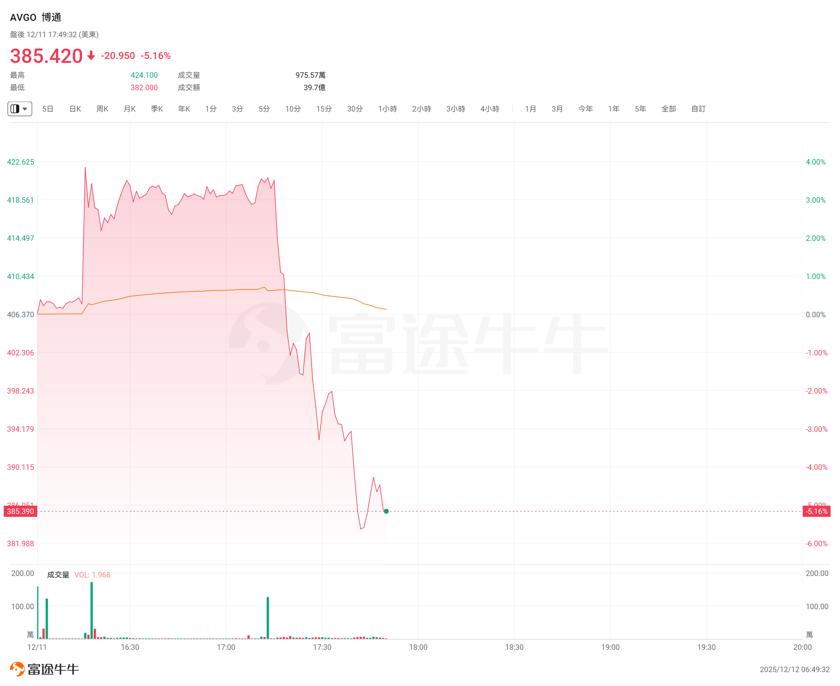 不过博通CFO在电话会议上表示:受人工智能(AI)产品影响,第一财季毛利率将收窄1%。受此影响,博通盘后短线回落至跌超5%,此前一度涨超4%。