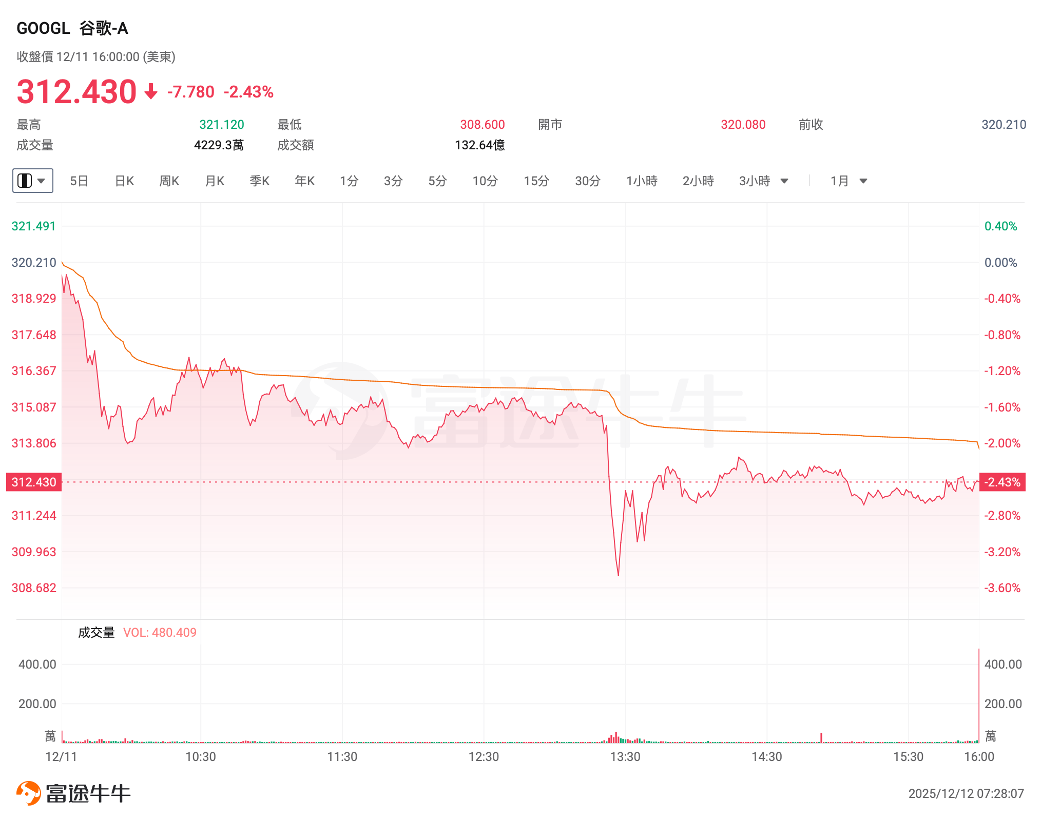 受此消息影响, $谷歌-A(GOOGL.US)$ 跌超2%。