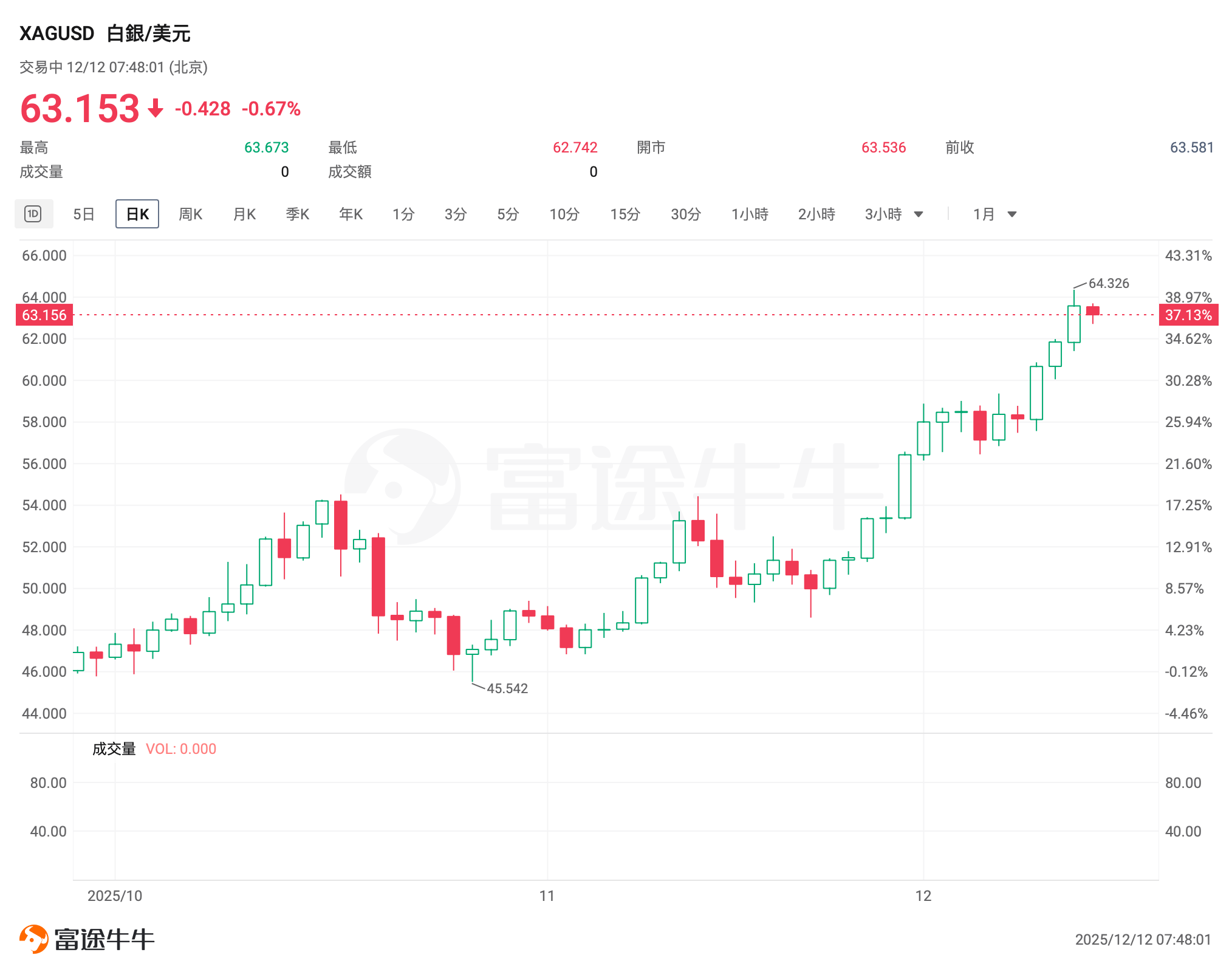 $白银/美元(XAGUSD.FX)$ 一度冲上64美元,续刷历史新高。