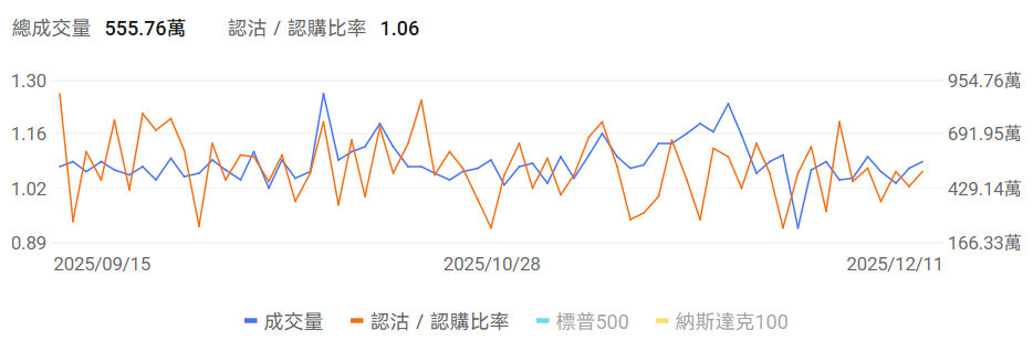 当前美股指数期权市场成交量上行,认沽/认购比例上行。