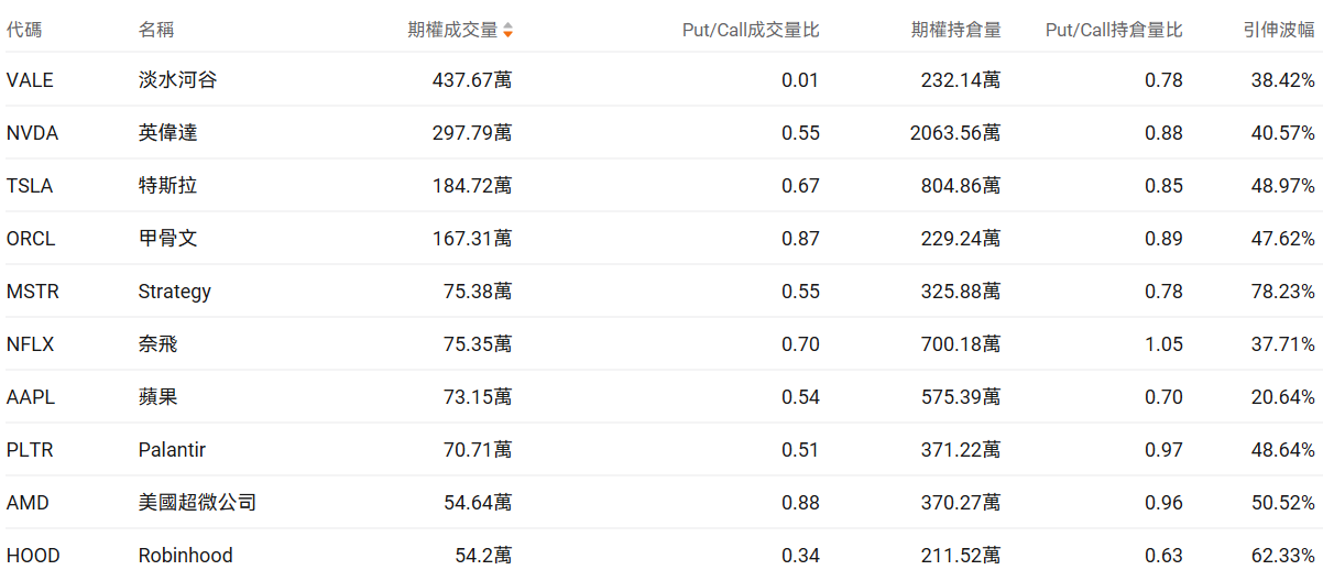 美股期权成交量排行榜前十