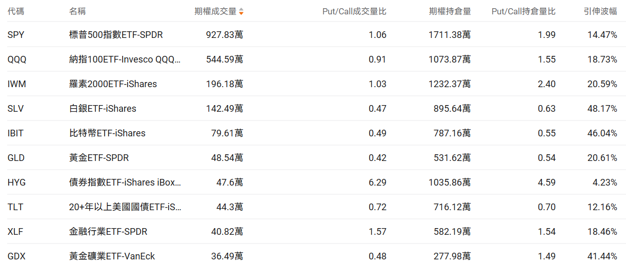 三、美股ETF期权成交榜