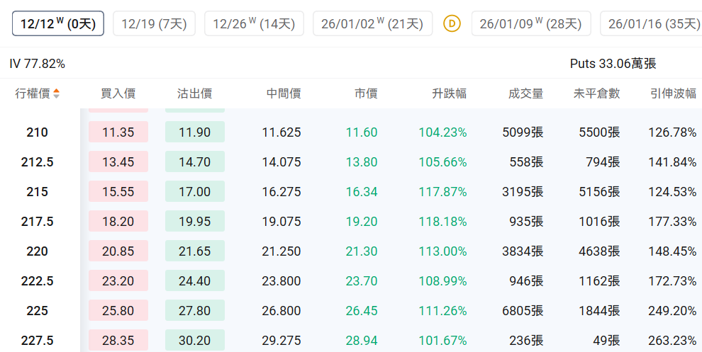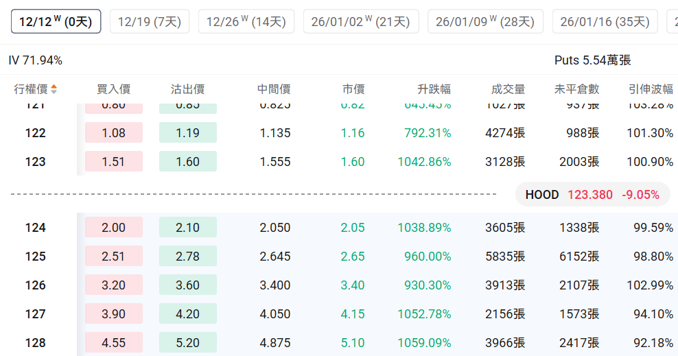 观察本周五行权的PUT单,最高涨幅翻倍。