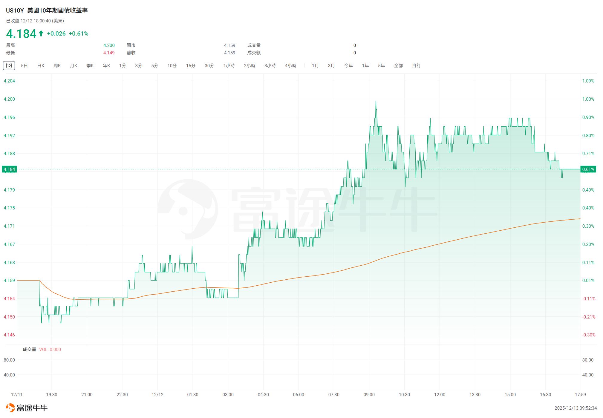 市场已经在为这种风险定价。自11月下旬媒体报道哈赛特成为领跑者以来,作为全球资产定价之锚的10年期美国国债收益率已从4.0%跳升至4.2%。与此同时,债市交易员对通胀的焦虑正在升温——衡量长期通胀预期的关键指标“5年之5年”远期通胀互换利率(5y5y forward inflation swap)近期上涨了0.06个百分点,创下一个月新高。