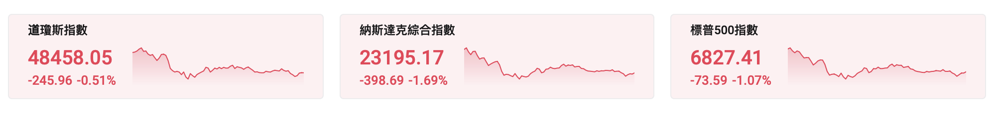 道指跌 0.51%,上周累计上涨 1.05%;纳指跌 1.69%,上周累计下跌 1.62%;标普 500 指数跌 1.07%,上周累计下跌 0.63%。