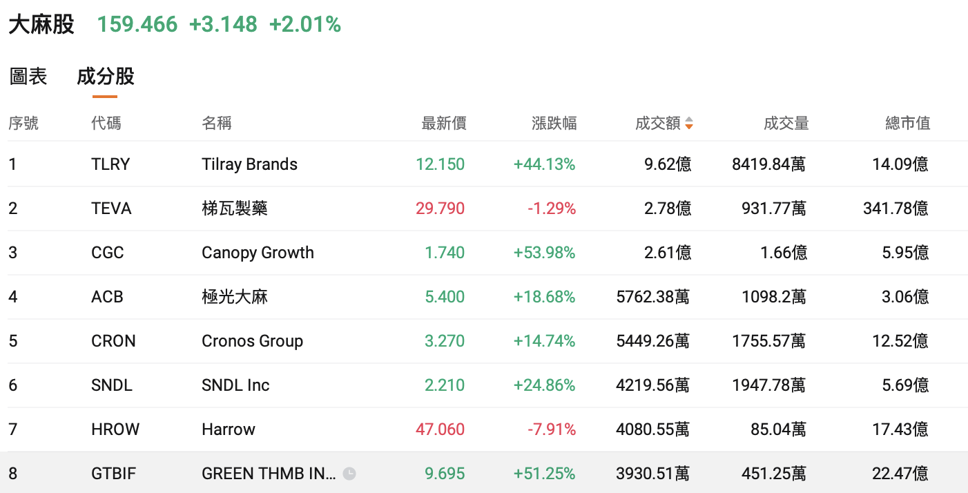 美股 $大麻股(LIST2997.US)$ 飙升, $Tilray Brands(TLRY.US)$ 大涨 44%, $Canopy Growth(CGC.US)$ 涨近54%, $SNDL Inc(SNDL.US)$ 涨近25%。