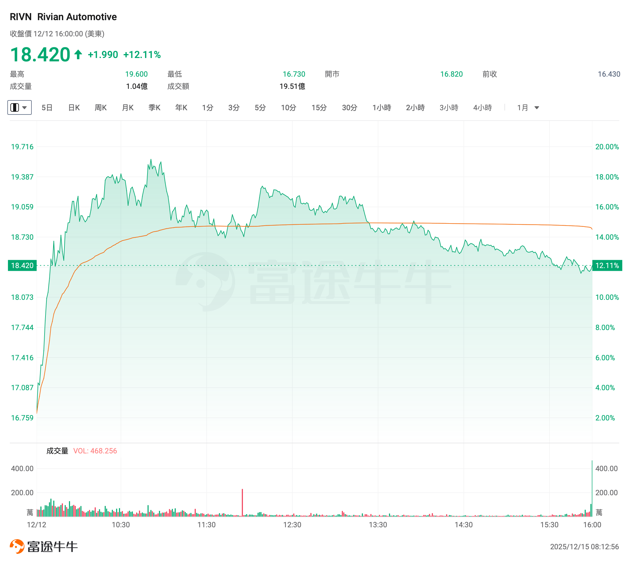 Rivian自研芯片豪赌自动驾驶,声称运算速度四倍于英伟达系统,涨超12%