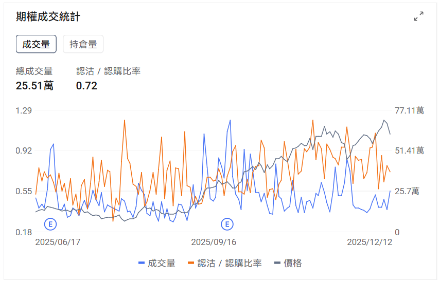 认沽/认购比例下降,成交量上升。