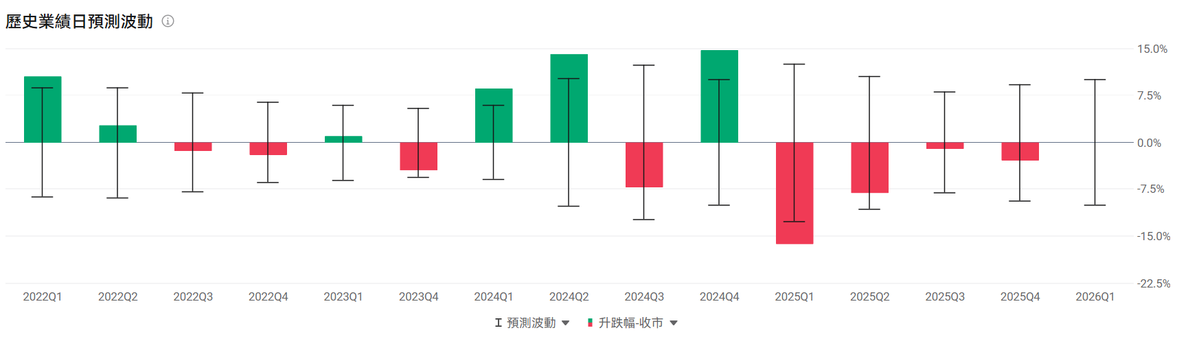 观察财报后的期权预测业绩走势,估计历史业绩波动是±4.31%。