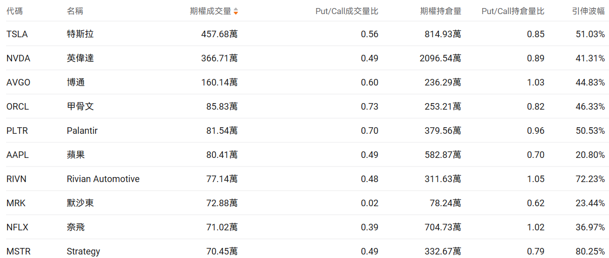 美股期权成交量排行榜前十
