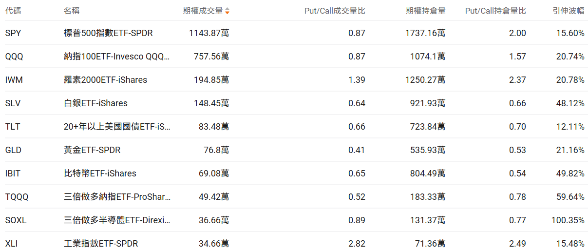 三、美股ETF期权成交榜