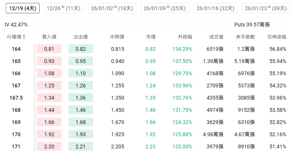 观察本周五行权的PUT单,多张涨幅翻2倍。