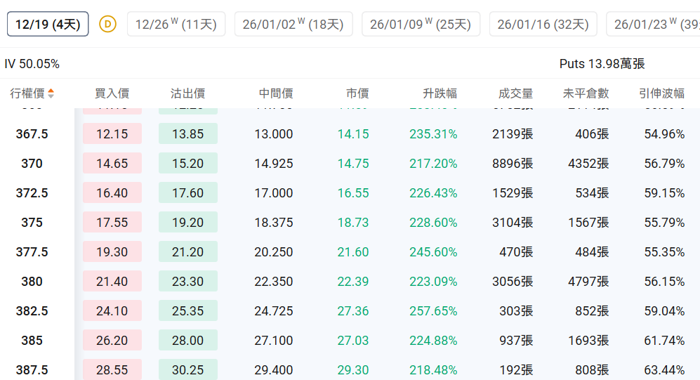 观察本周五行权的PUT单,多张涨幅翻倍。