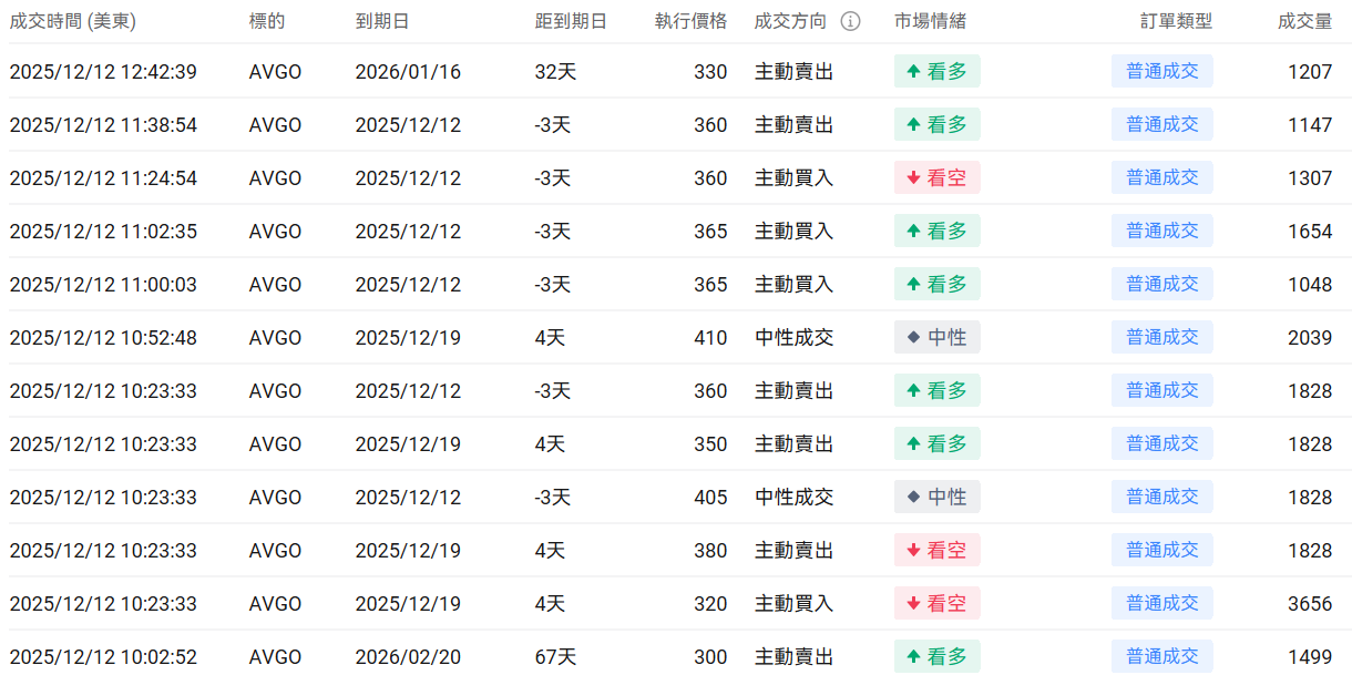 2、 $博通 (AVGO.US)$ 上一交易日跌11.43%,前一日认沽/认购比例下行,成交量大幅度上行。