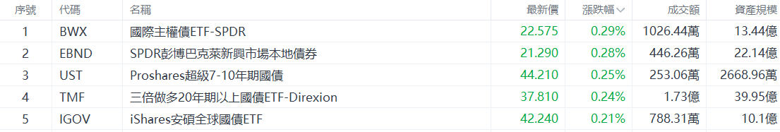 $Proshares超级7-10年期国债(UST.US)$ 升0.25%,成交额253.06万美元。