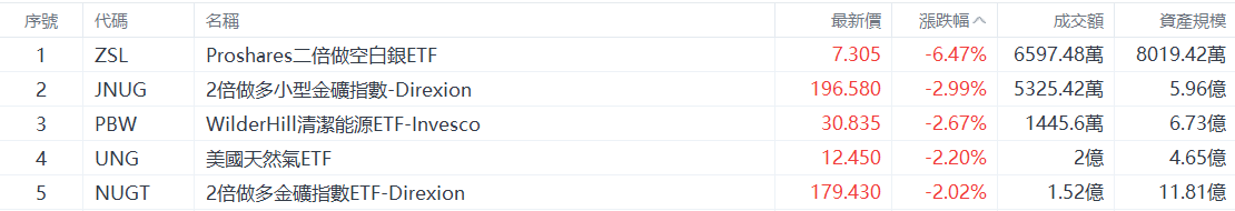 $Proshares二倍做空白银ETF(ZSL.US)$ 跌6.47%,成交额6597.48万美元。