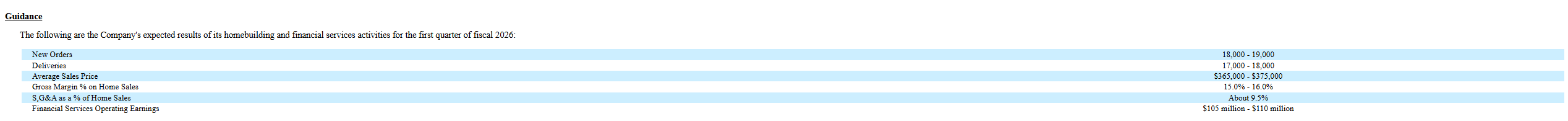 “本季度,公司交付了 23,034 套住房,获得了 20,018 份新订单。平均销售价格为 38.6 万美元,毛利率为 17%,销售、一般及管理费用(SG&A)占比 7.9%,最终净利润率为 9.1%。”