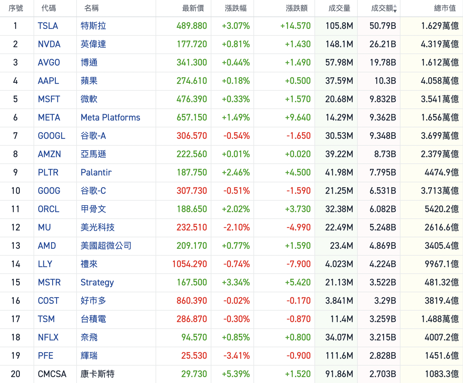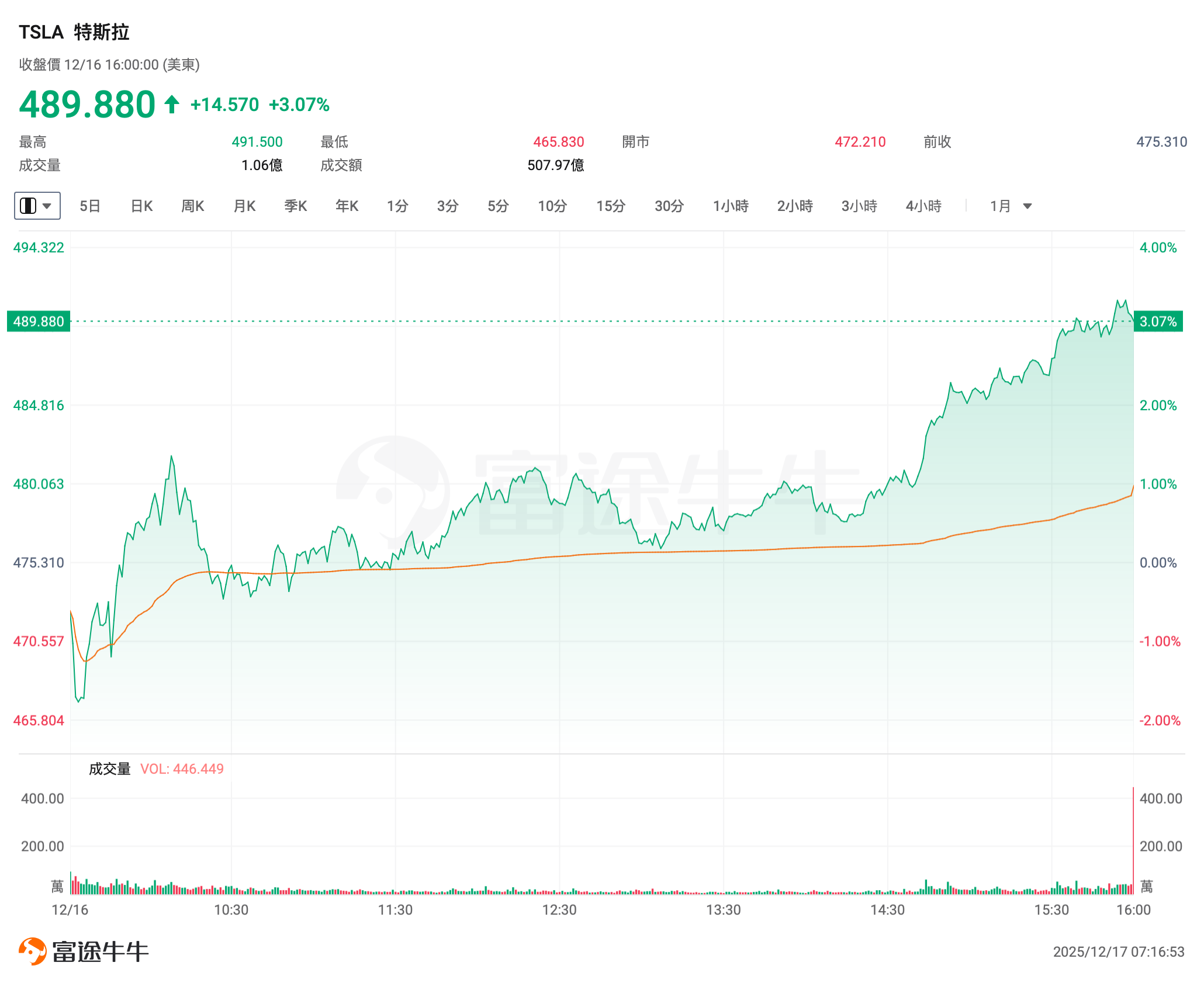 大型科技股普涨, $特斯拉(TSLA.US)$ 涨3.07%创历史新高, $甲骨文(ORCL.US)$ 涨2.02%止步三连跌, $Meta Platforms(META.US)$ 涨1.49%, $英伟达(NVDA.US)$ 、 $苹果(AAPL.US)$ 微涨。
