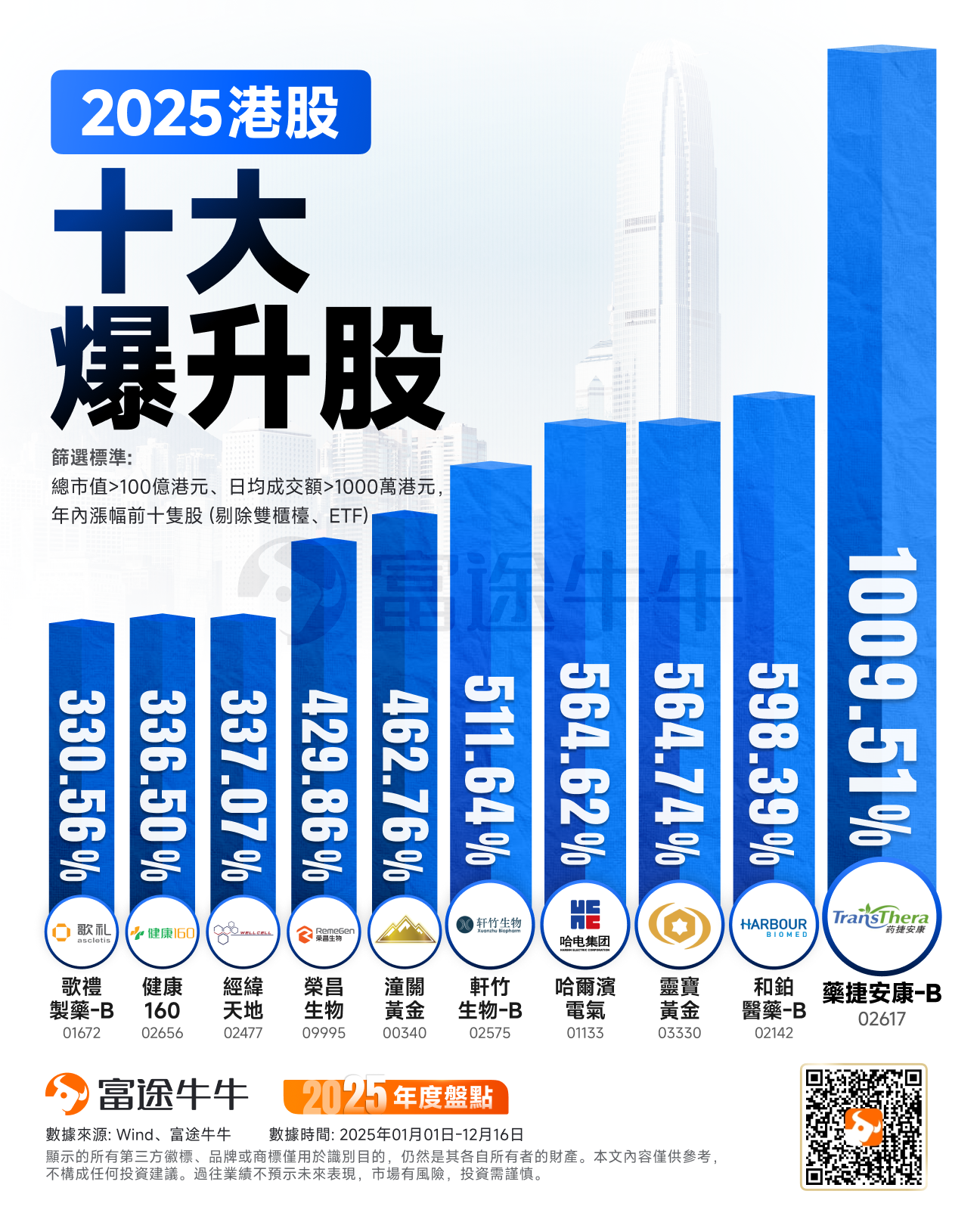 纵观港股年内十大爆升股,生物医药与黄金共同构成了市场的两大核心主线。