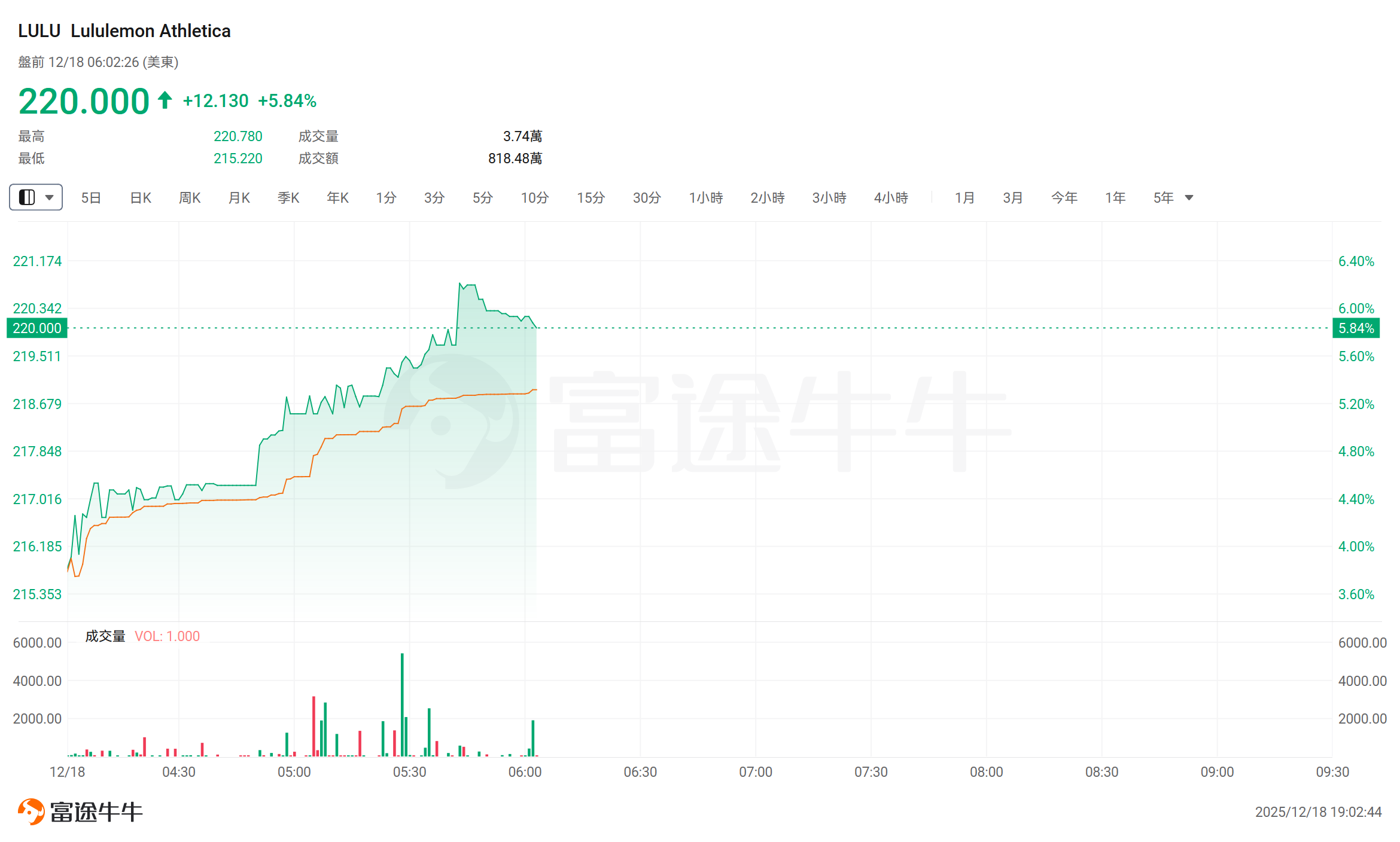 Lululemon盘前涨近6%,激进投资者Elliott据报持有公司超10亿美元股份