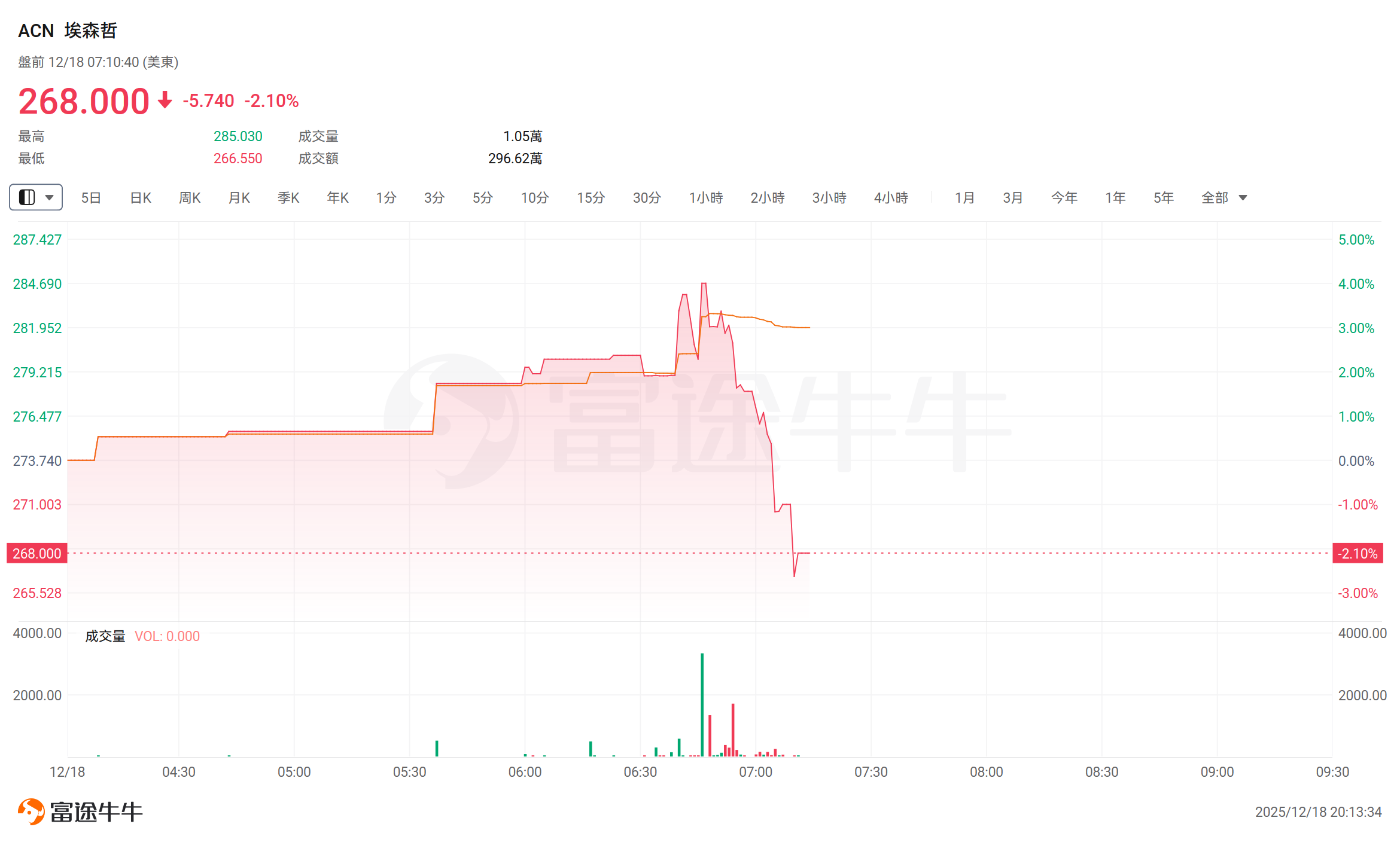 $埃森哲(ACN.US)$ 盘前跌超2%,第一季度调整后每股收益3.94美元,预估3.72美元;第一季度营收187亿美元,预估185.2亿美元。