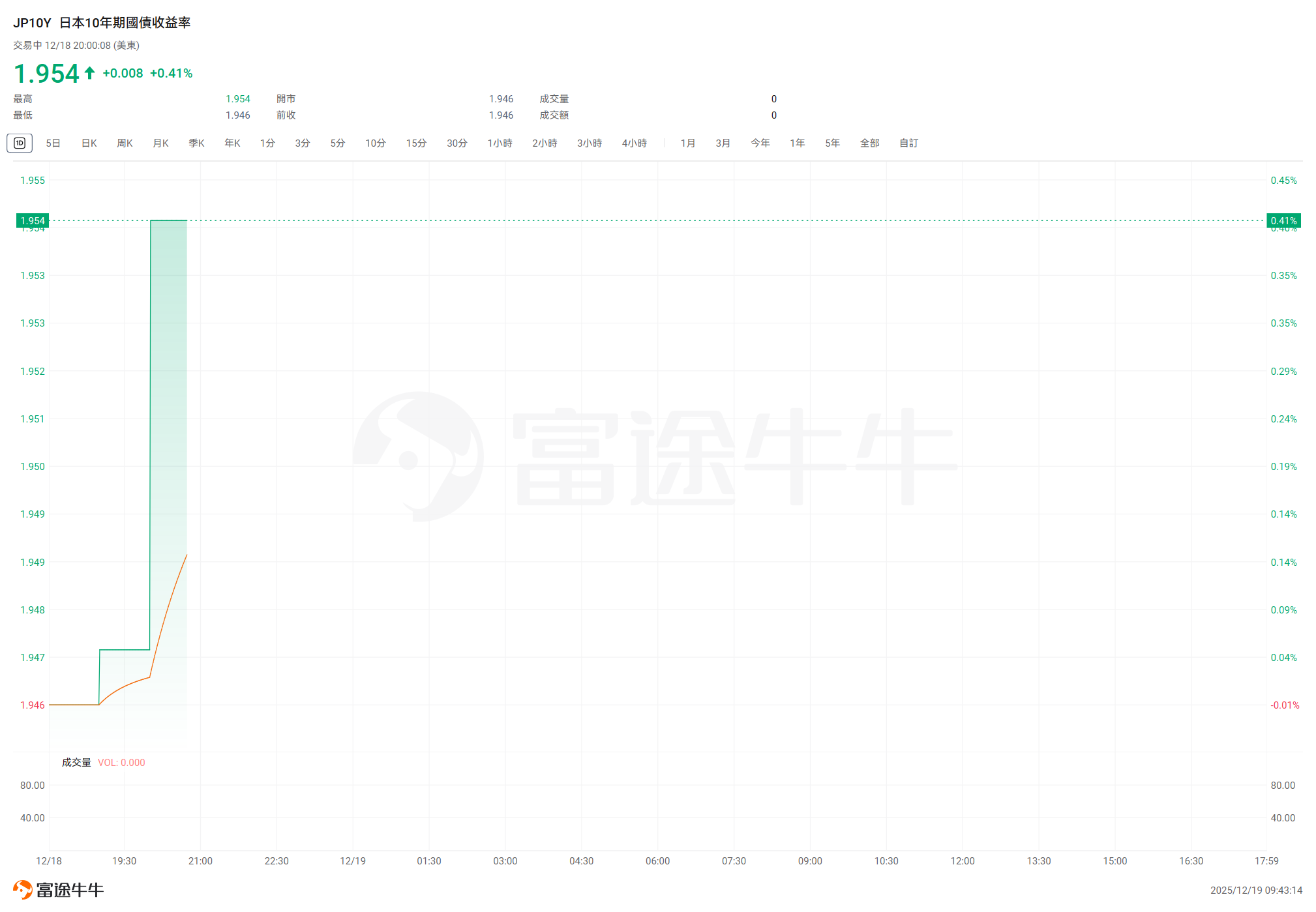 此次数据发布恰逢日本央行即将结束为期两天的政策会议。市场普遍预计,央行将把政策利率从当前的0.5%上调至0.75%,这将是该国自1995年以来的最高利率水平。