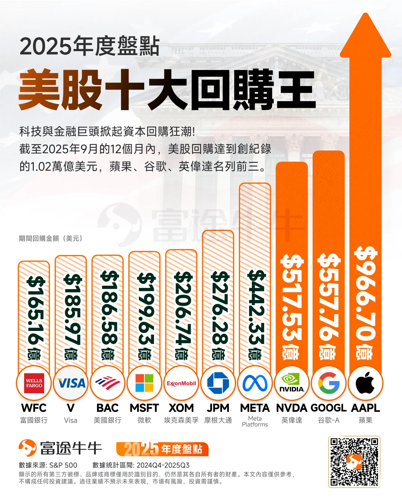 富途资讯整理出「2024Q4-2025Q3美股回购金额居前的10家公司」,供牛友参考。